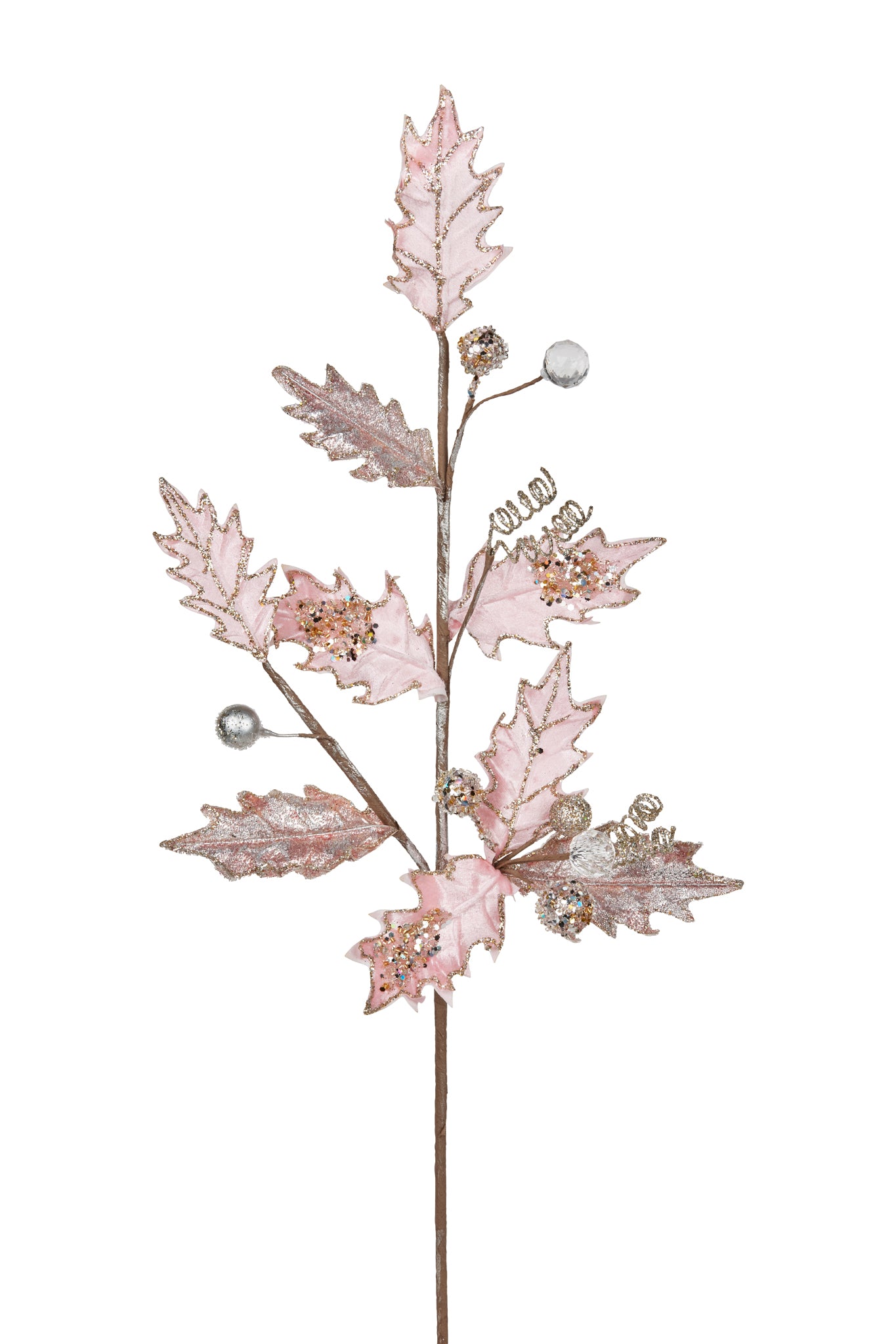 This beautiful spray features traditional holly leaves and berries with a soft pink finish for something a little different. This quality Christmas floral will add a pop of color and cheer to any arrangement or tree. The detail and finish will amaze and look stunning in any collection.