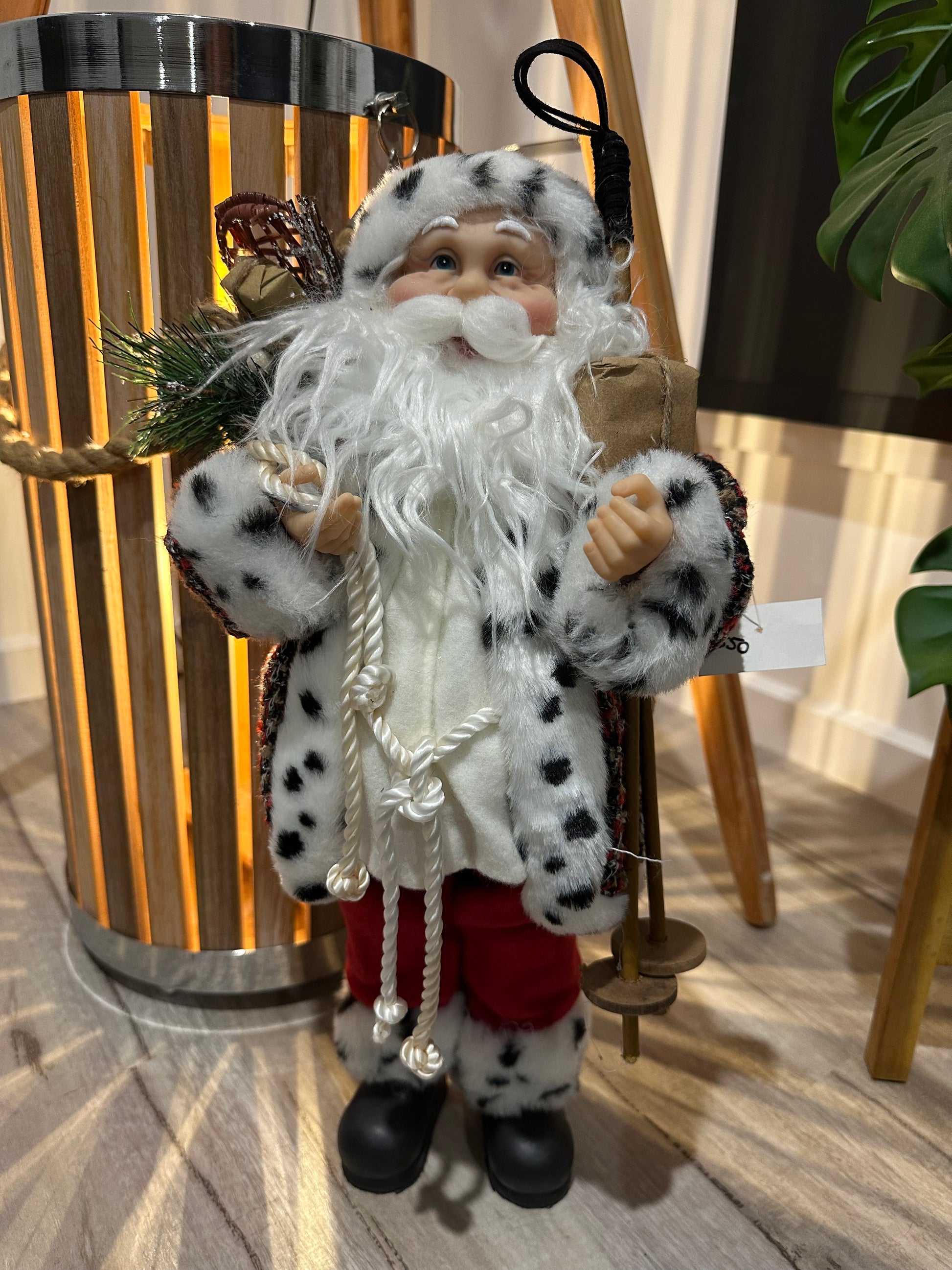 Dalmatian Santa looks so cosy and warm in his gorgeous warm coat. Carrying skiing sticks and a sack full of presents.
