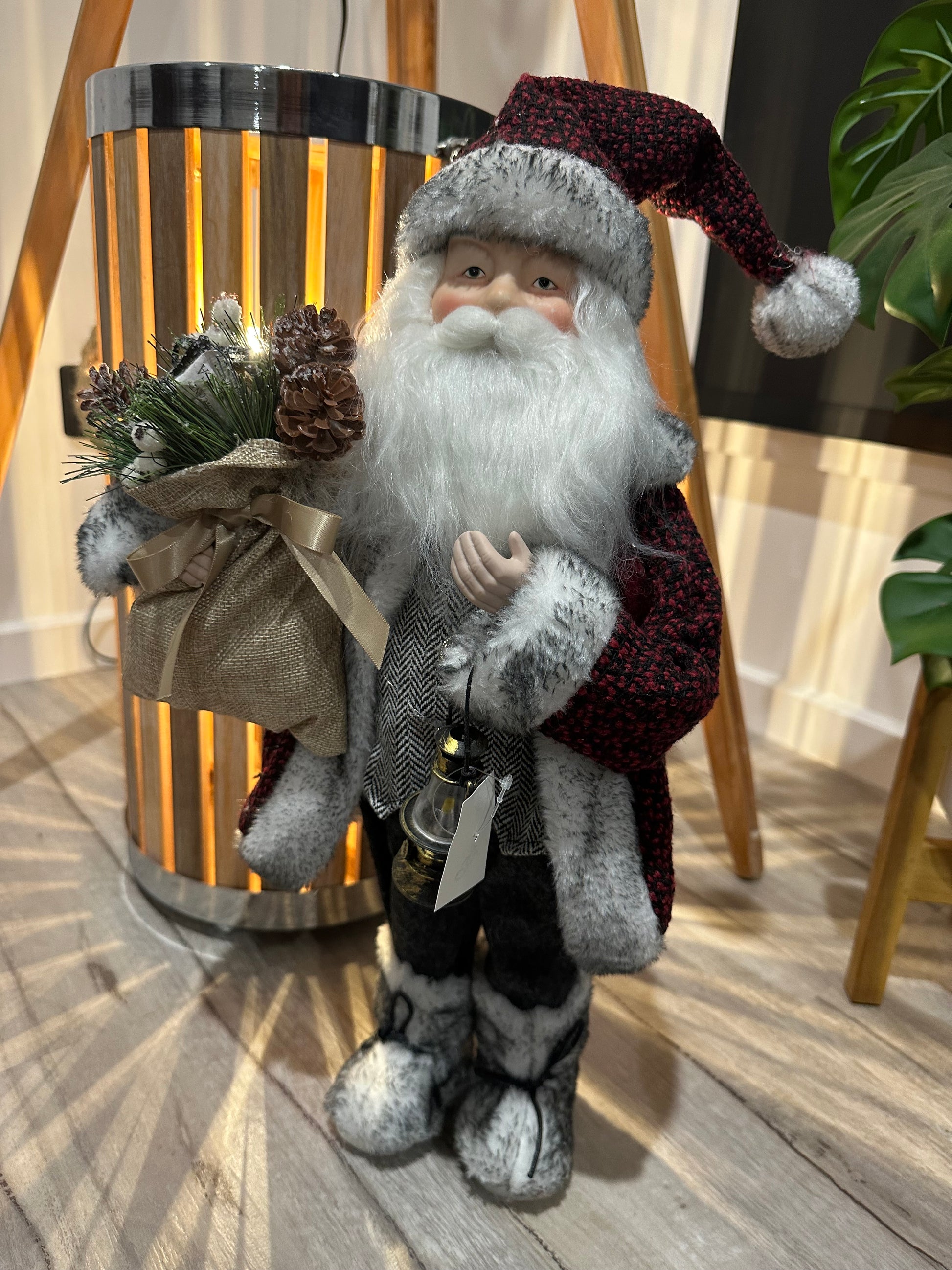 Santa is ready for weather in the North Pole with his fury boots and beautiful warm coat.