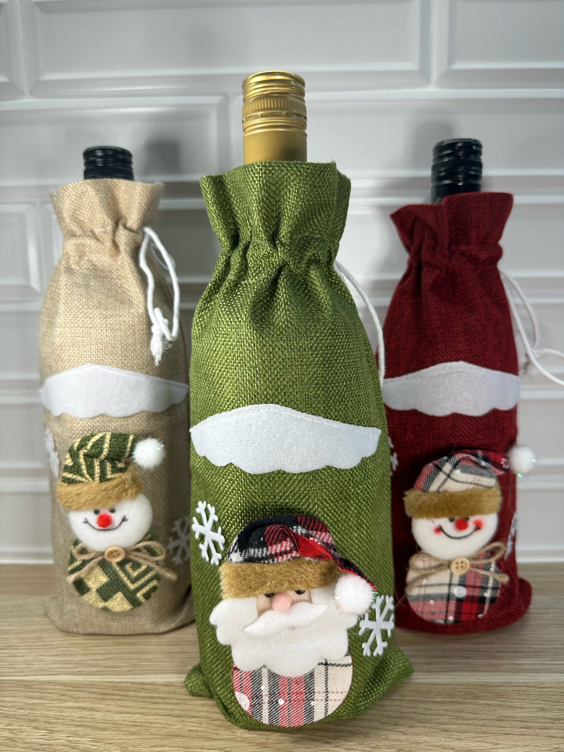 Cover your wine bottle this festive season with these cute Snowmen or Santa sacks. They are a lovely touch to your dinner parties, and make great gift ideas.