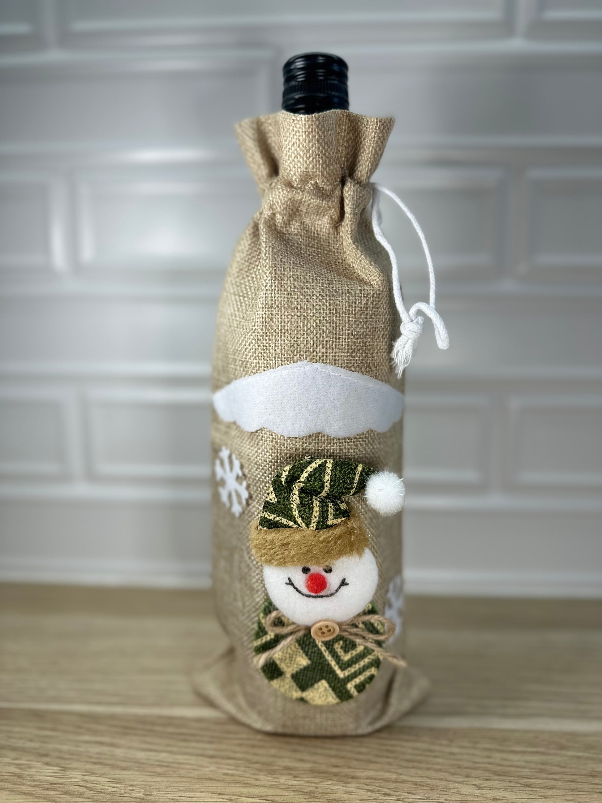 Snowman Wine Bottle Sack - BEIGE